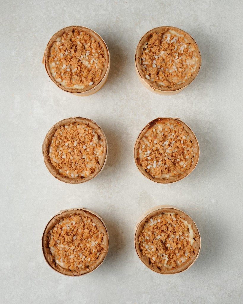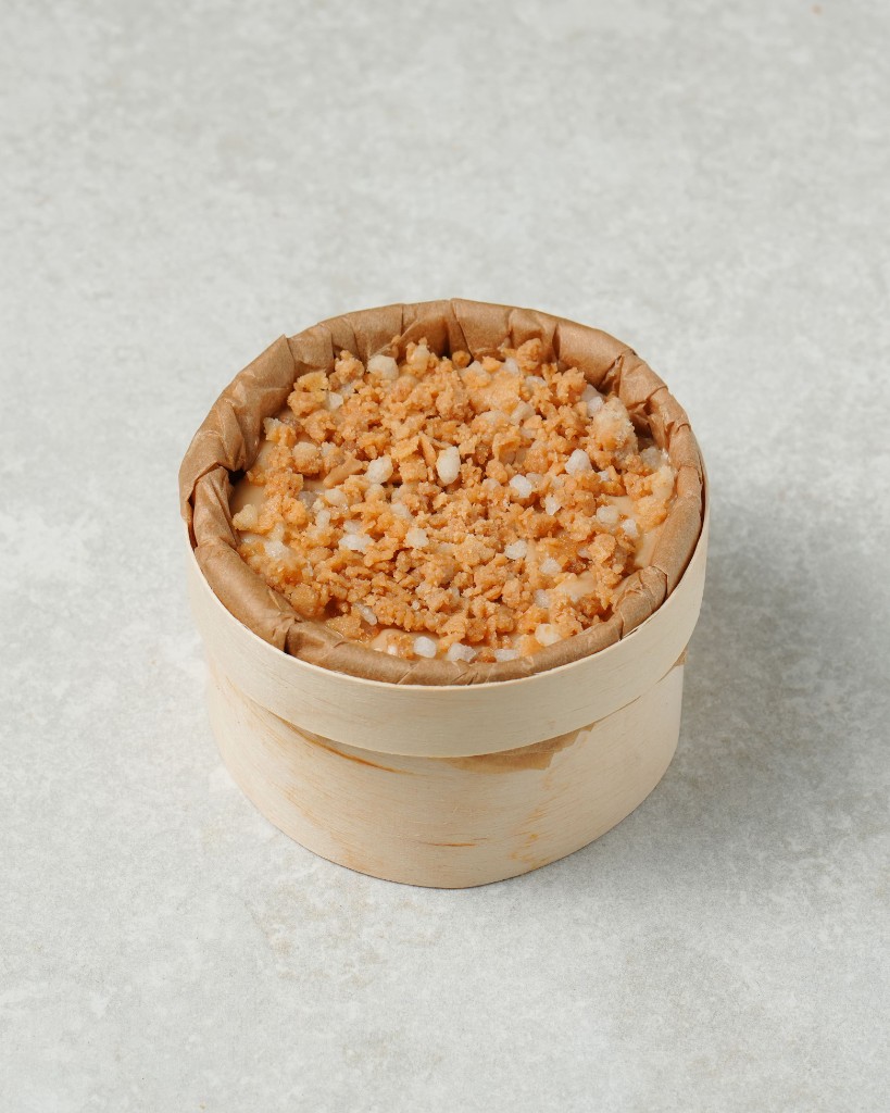 Crema de queso con cremoso de avellana y barquillo.