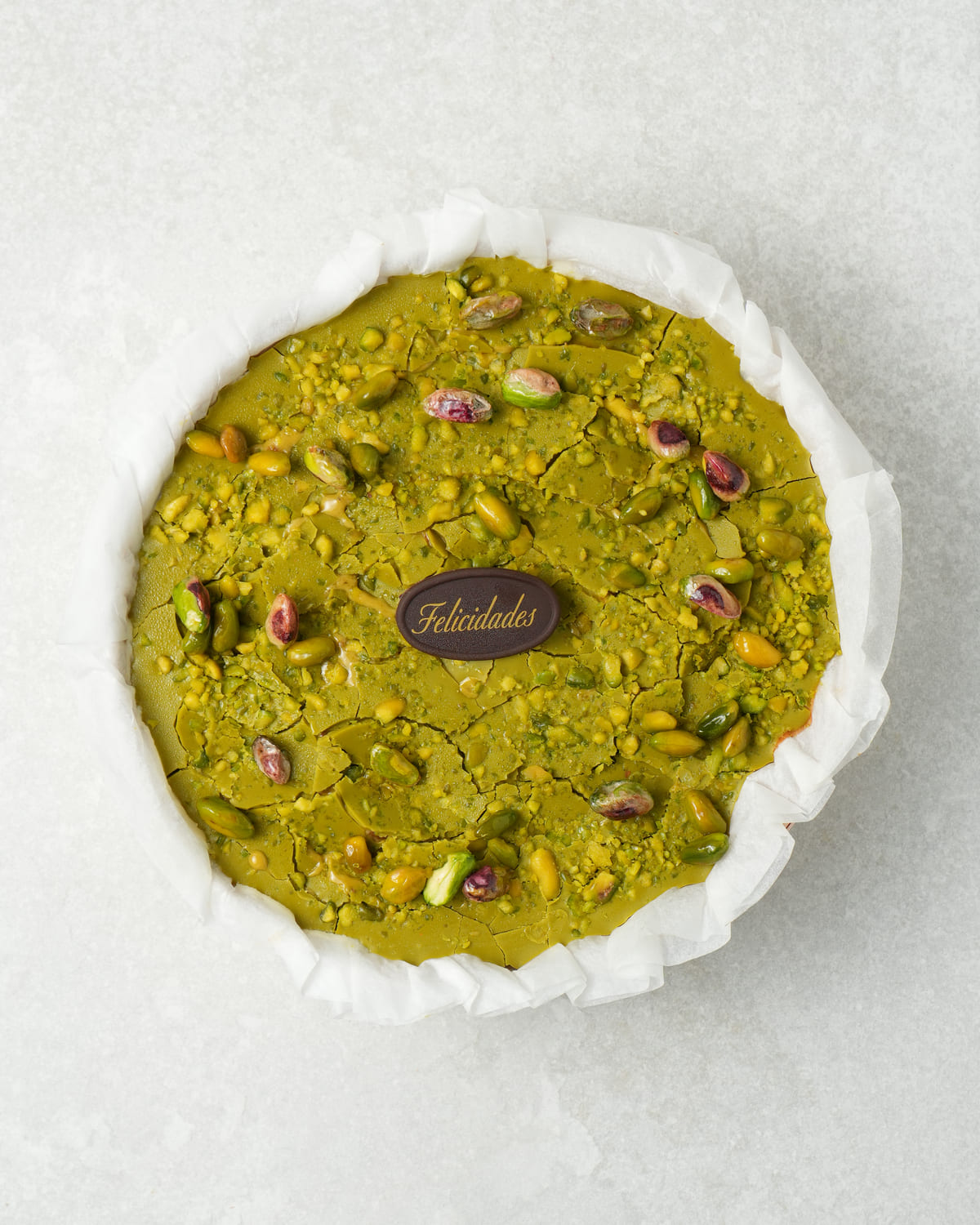 Nuestra cheesecake de pistacho combina la suavidad de la crema de queso con crujiente y chocolate de pistacho.