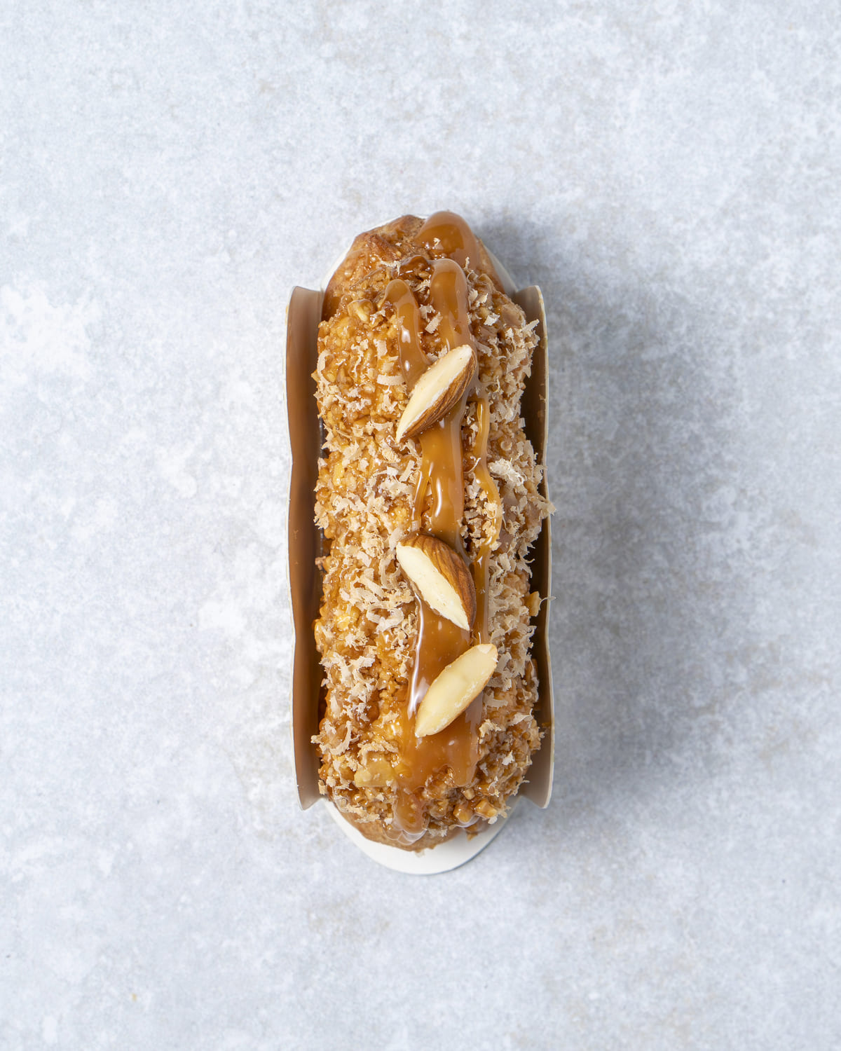 Cremoso de turrón con almendra caramelizada y turrón blando.