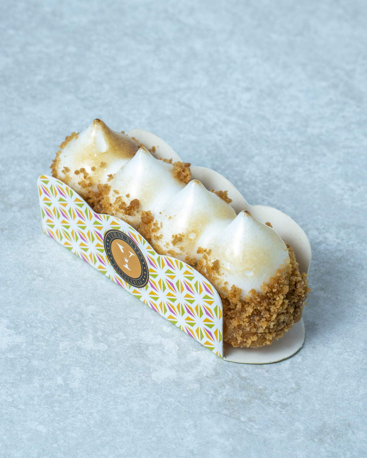 Cremoso de limón, crumble de vainilla y merengue italiano.