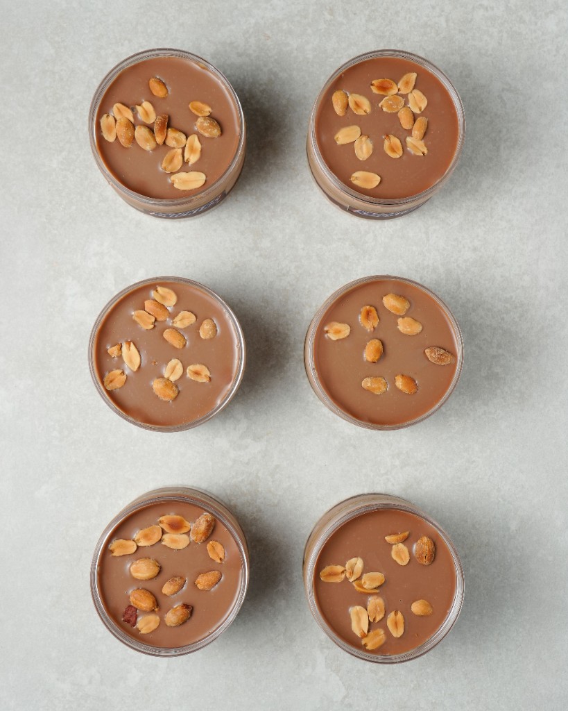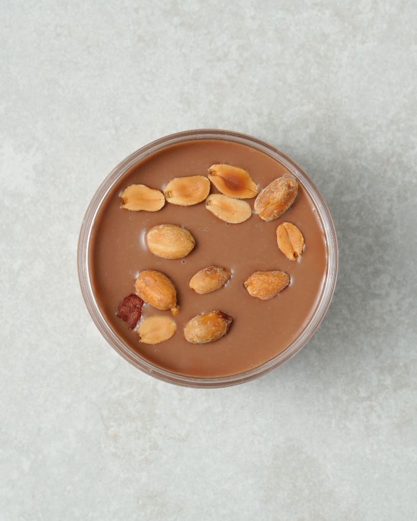 Crumble de vainilla, cremoso de chocolate, mousse de chocolate, cremoso de cacahuete y cacahuete entero.